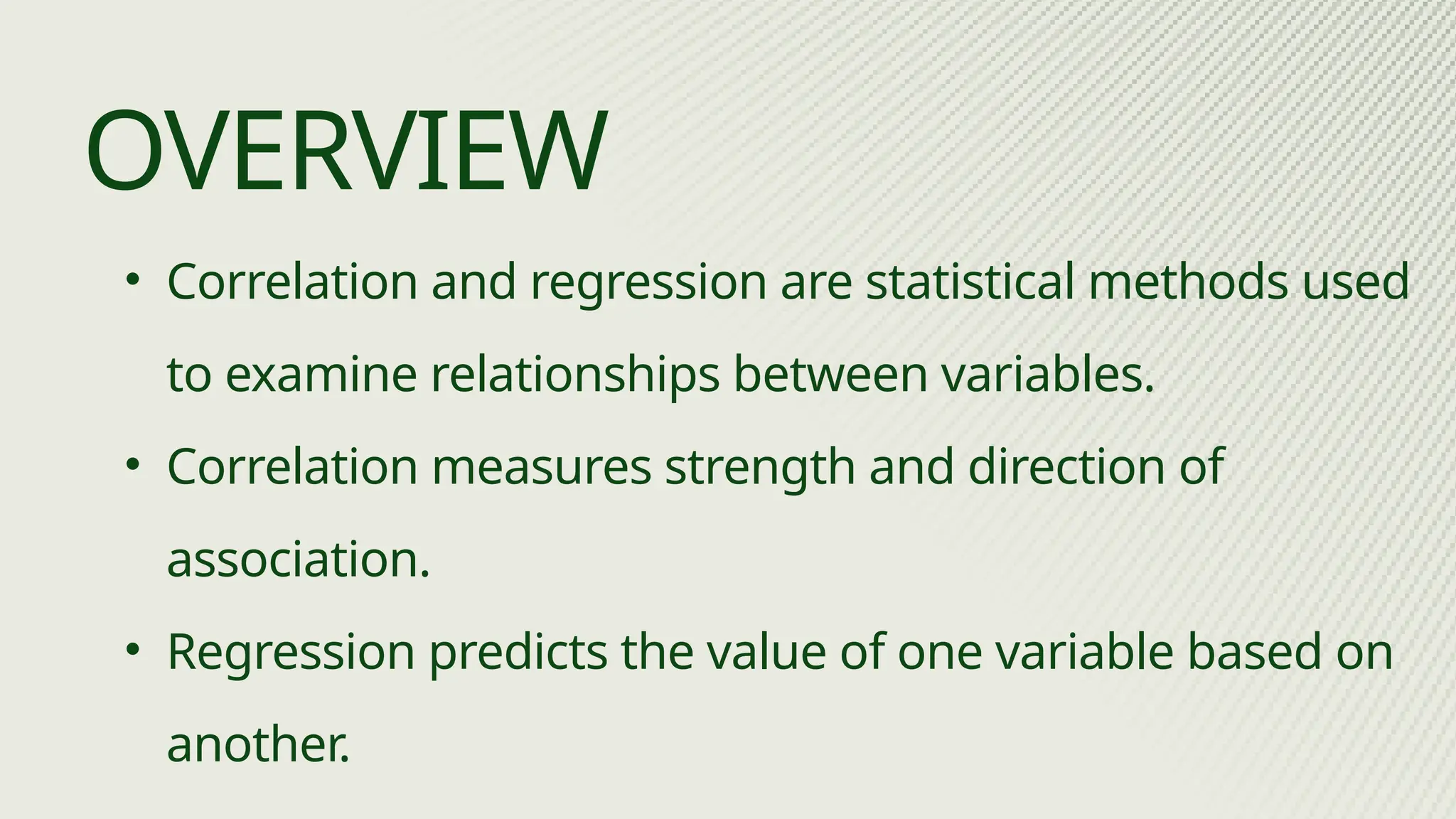 Correlation and regression are statistical methods used to examine relationships between variables.