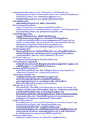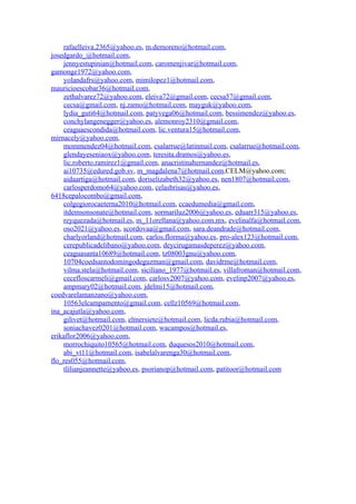 This document contains a list of over 150 email addresses. It does not provide any context or information about the purpose of the email addresses. The email addresses use a variety of domains including hotmail, gmail, yahoo and others.