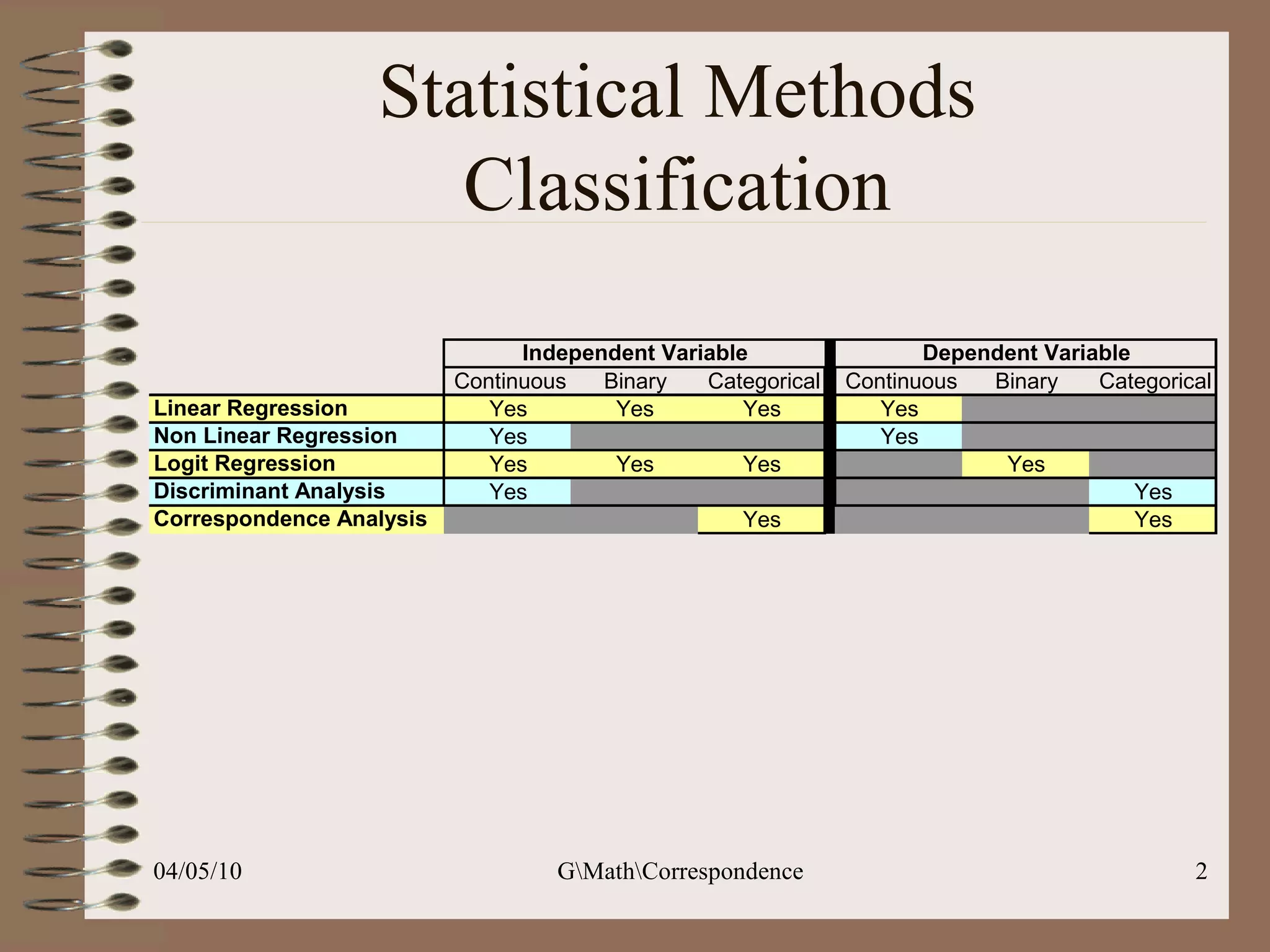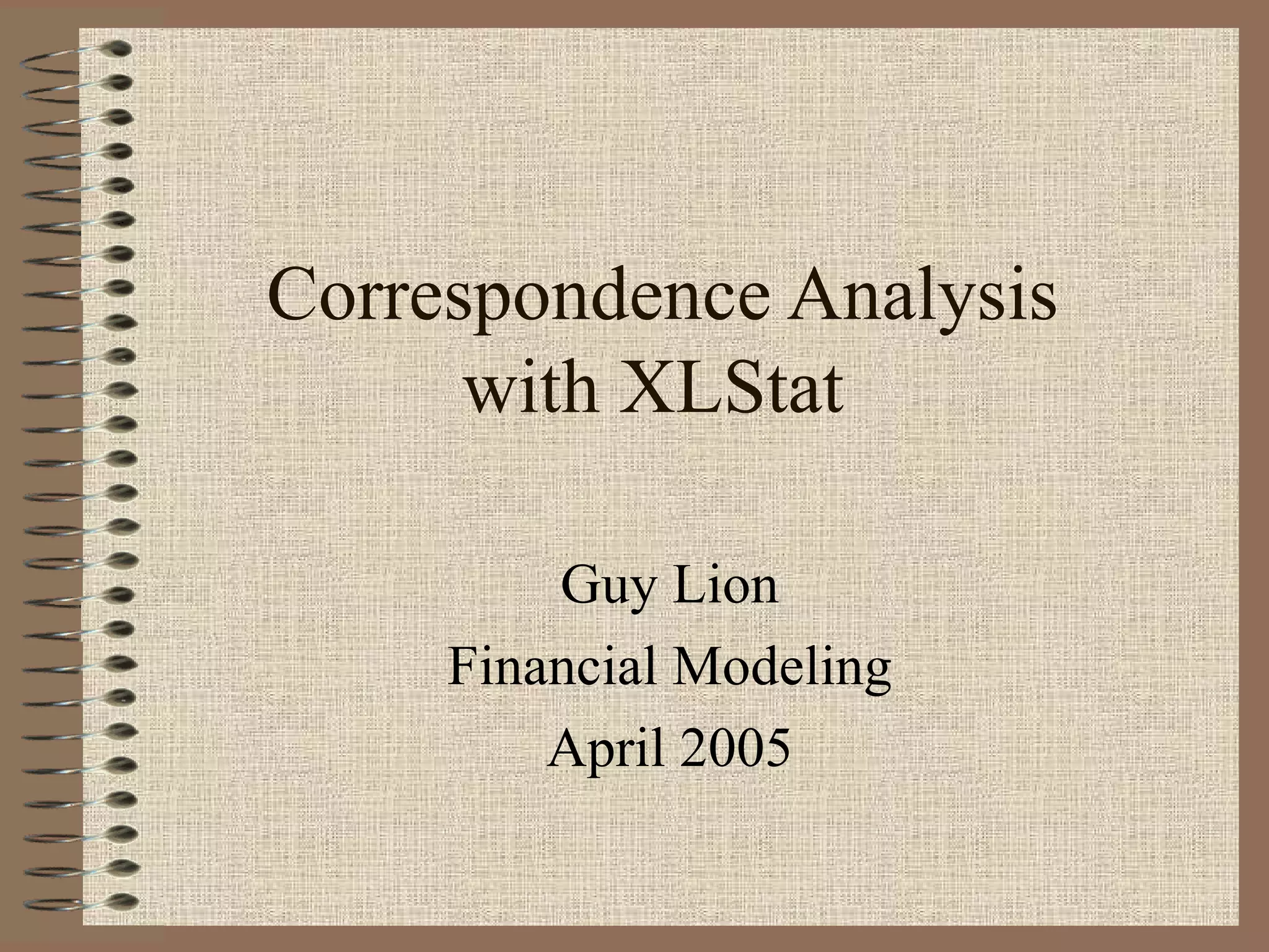 This document discusses correspondence analysis (CA), a technique that analyzes the association between two categorical variables. It provides an example of using CA to analyze the relationship between age groups and opinions on a movie from a survey of 1357 respondents. The analysis finds that the 16-24 age group and the "Good" opinion category contribute most to the variation in the data and are the most distant from the average categories. CA represents the data in a two-dimensional space to visualize these relationships between the categorical variables.