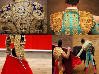 Bullfighting is a traditional Spanish spectacle where a matador fights and kills a bull. The bullfight follows a set structure with stages including the entrance of the bull, taunting of the bull by banderilleros who stick barbed darts in the bull's neck and back, and finally the matador attempts to kill the bull with a sword. The document invites any questions about bullfighting.