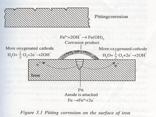 Corrosion is the deterioration of materials due to chemical or electrochemical reaction with the environment. It is an inevitable process that leads to significant economic losses. Corrosion engineering studies corrosion mechanisms and works to prevent or control corrosion economically and safely. Common types of corrosion include galvanic, erosion, crevice, pitting, and microbiologically influenced corrosion. Factors that influence corrosion include the metal properties, environmental conditions like temperature, pH, and presence of ions. Protection methods include material selection, cathodic protection, modifying the environment, metallic coatings, inorganic coatings, and organic coatings.