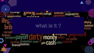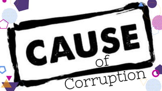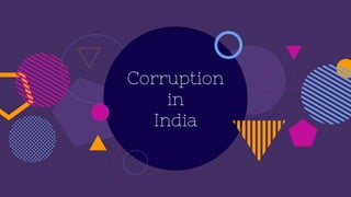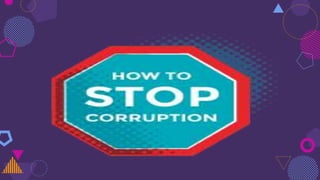 The document outlines the issue of corruption in India, describing it as the misuse of public power for personal gain, fueled by factors such as greed, lack of moral values, and fear of reprisal. It highlights significant scams like the Commonwealth Games scam, Fodder scam, 2G spectrum scam, and Coalgate, illustrating the widespread financial losses and the detrimental impacts on society and economy. The document also suggests various measures to combat corruption, including better salaries for government workers and enhanced oversight of public transactions.