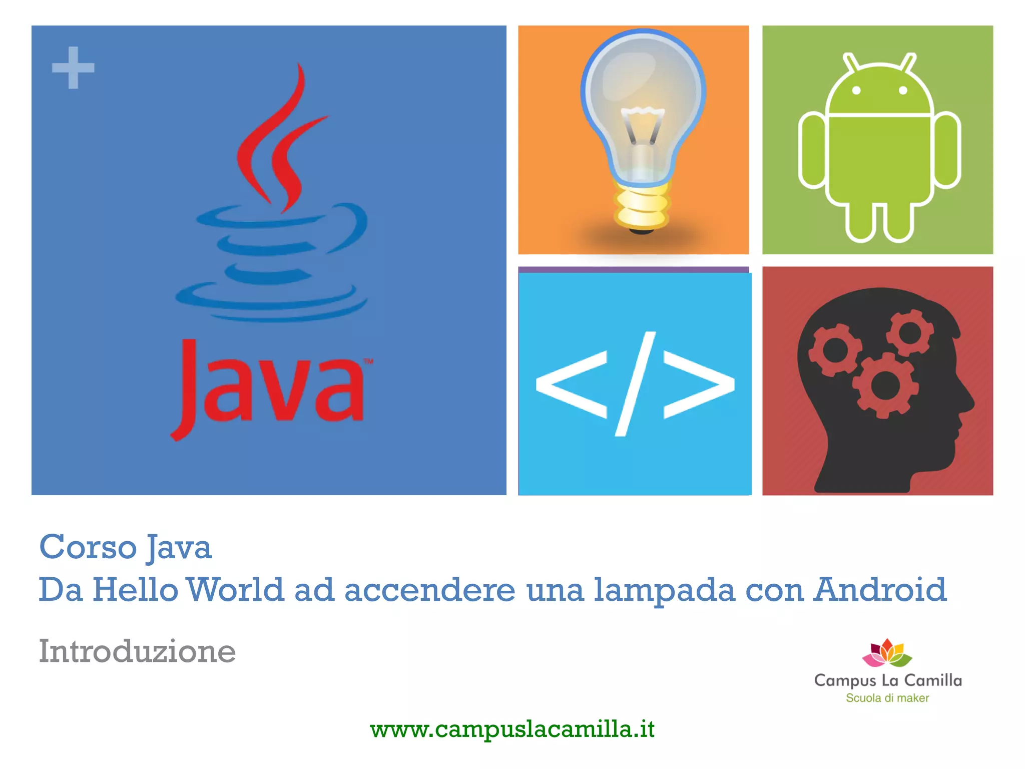 Il documento presenta un corso di programmazione Java tenuto da Giacomo Bellazzi, mirato a insegnare ai partecipanti le basi della programmazione a oggetti e dell'uso di Eclipse come IDE. Il corso si articola in tre giornate, durante le quali gli studenti apprenderanno l'uso delle librerie Java, l'interazione con Android e concetti fondamentali di programmazione. Inoltre, viene enfatizzata l'importanza della collaborazione e della chiarezza nella comunicazione durante il processo di apprendimento.