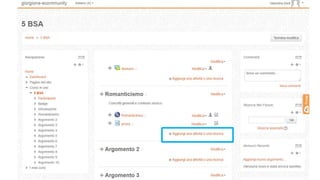 La seconda lezione del corso Moodle illustra come inserire allegati e risorse, modificare le sezioni in un corso impostato come argomenti e gestire attività interattive con i corsisti. Viene inoltre discusso il materiale che il docente deve consegnare agli studenti.
