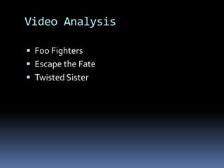 1. The Foo Fighters music video depicts a battle between the band and armored men, using colors and symbols to represent conflict.