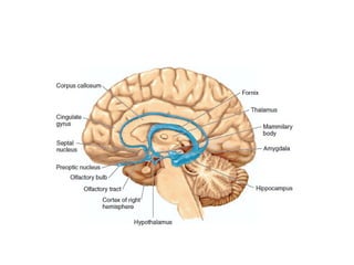 3. It covers topics like cerebral dominance, language areas, aphasias, memory, thought, the limbic system, hypothalamus, amygdala, reticular formation, and sleep cycles.