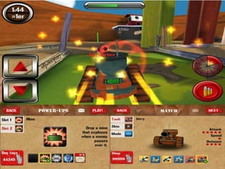 This document discusses a game development company that creates multiplayer games using Unity 3D and has developed 4 intellectual properties including their most successful game Tank Battle which has over 1.2 million organic downloads and receives 2-5k downloads per day. They are also working on additional games like Toy Arena and Mystic War while keeping another project top secret. The document ends by thanking anyone who reviewed it for their time.