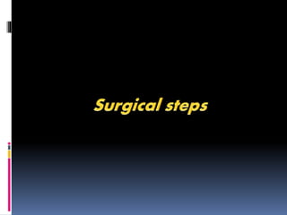 1) The document discusses the surgical approach and procedure for cortical mastoidectomy. Key steps include raising skin and periosteal flaps, drilling along anatomical landmarks like the sigmoid sinus and facial nerve to identify structures, and widening the aditus and performing a posterior tympanotomy to access the mesotympanum.