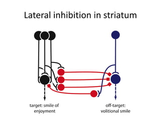 The document discusses the basal ganglia circuitry which controls different functions through connections between basal ganglia regions and other areas of the brain. It specifically mentions cortical vs subcortical loops, direct and indirect pathways within the basal ganglia, and lesions that can cause hemiballism. The basal ganglia circuits connect motor, oculomotor, dorsolateral prefrontal, orbitofrontal, and anterior cingulate regions to control actions, gaze, executive function, motivation, and emotionality.