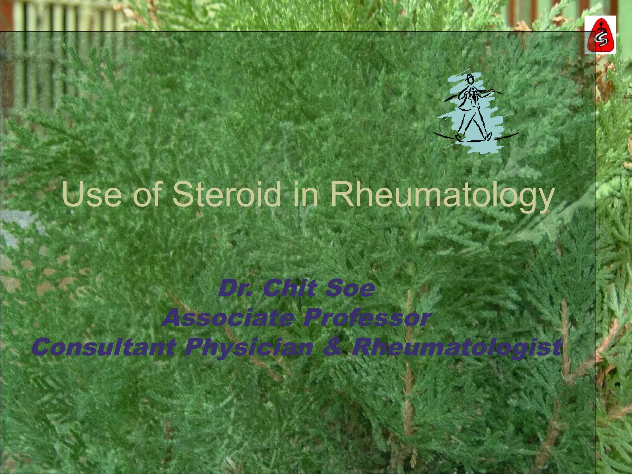 Dr. Chit Soe's document discusses the long-term use of steroids in rheumatology. It provides an overview of how steroids were initially seen as a promising treatment for rheumatoid arthritis but were later found to have serious adverse effects with high doses. The document examines the controversy around low-dose steroid use and different regimens for corticosteroid pulse therapy. It also reviews potential benefits of steroids in improving symptoms and retarding erosion, as well as common short-term and long-term side effects associated with steroid treatment.