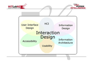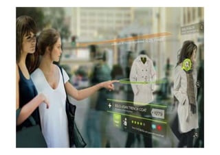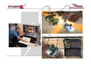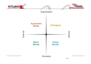 This document provides an overview of a course on augmented reality (AR). The course will cover introductions to AR technology and interaction techniques, AR authoring tools, and research directions in AR. Students will learn about AR and complete a simple AR project. They will be assessed through a research project, assignments, and a final exam. The document outlines the weekly topics and provides background on AR applications, history, and the importance of user experience design.