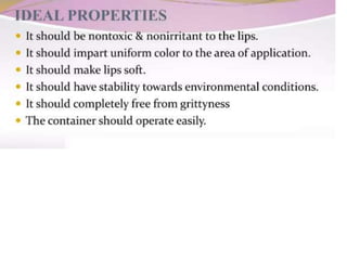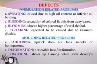 Cosmetic lipsticks are formulated with a pigment grind, wax base, and dilution oil blend, utilizing high-shear processed premixes and dispersing agents. Standard shampoo formulations consist of two types of surfactants, foam boosters, conditioners, and other additives. Pharmaceutical aerosols are pressurized products that release fine dispersions of active ingredients in a gaseous medium.
