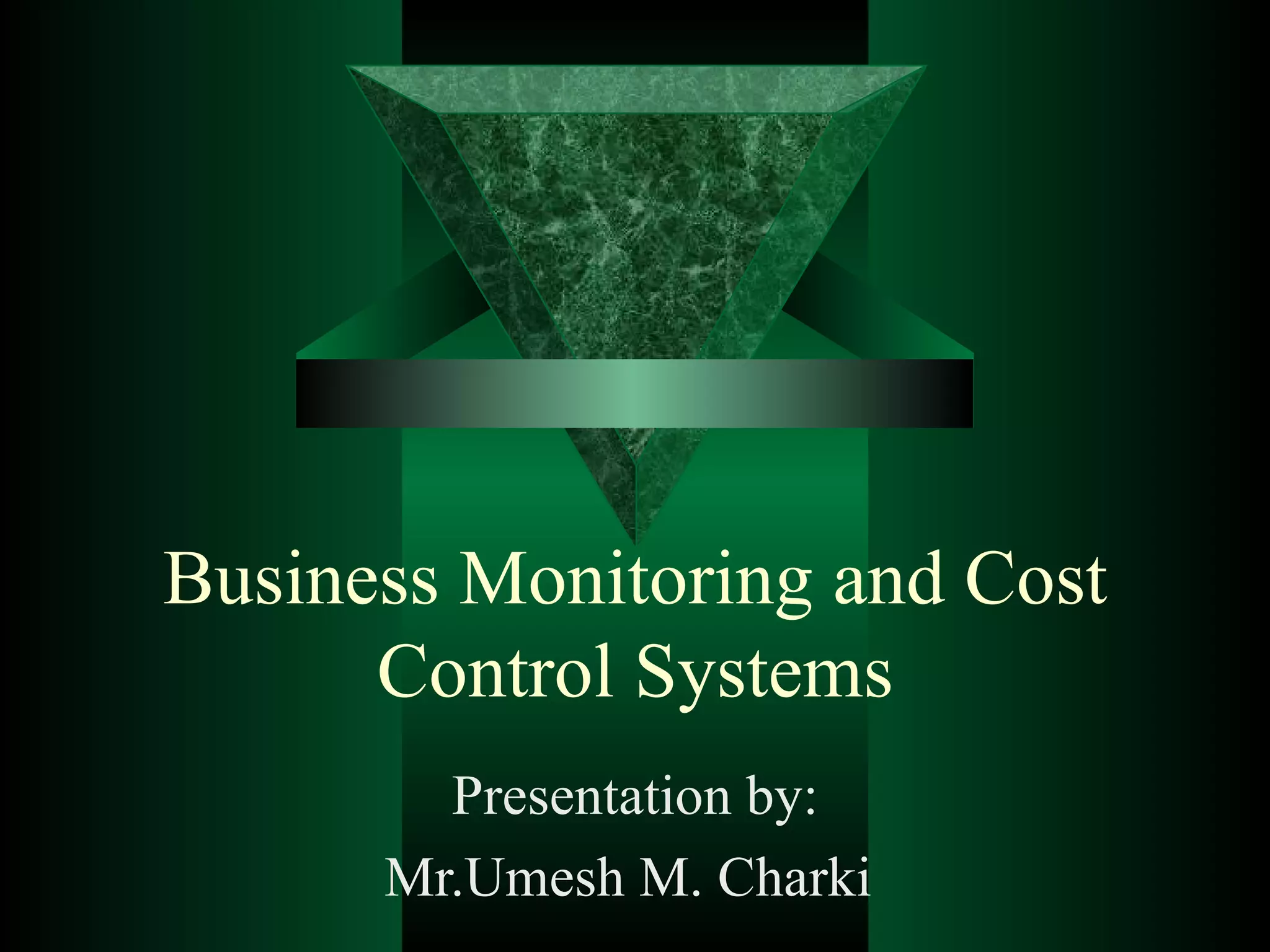 The document discusses strategies for business cost control and monitoring. It identifies major cost centers, types of costs, and opportunities to reduce costs through systematic analysis. Specific opportunities covered include reducing payroll, improving purchasing, increasing production efficiency, reviewing finances, and maximizing use of premises. The document cautions that some cost cuts can negatively impact employees or the business's ability to meet objectives if not implemented carefully.