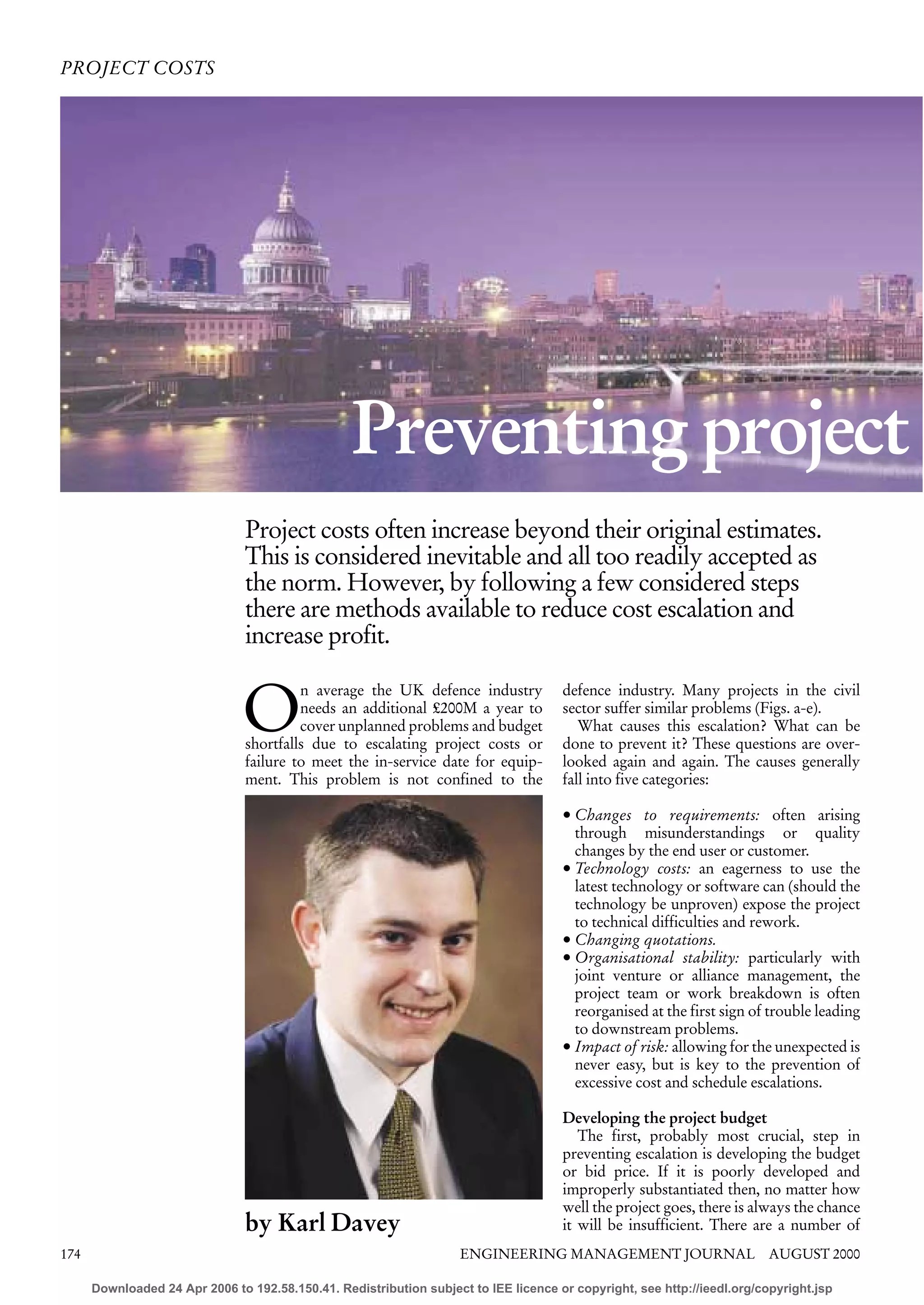 The document discusses methods to prevent project costs from escalating beyond original estimates. It identifies five common causes of cost escalation: changes to requirements, technology costs, changing quotations, organizational instability, and underestimating risks. Developing an accurate initial budget is crucial to preventing later cost issues. The budget should account for uncertainties and risks using techniques like Monte Carlo analysis. Contingency funds should then be proactively managed to mitigate risks as the project progresses, rather than passively waiting for problems. Regular risk analysis and contingency tracking can help surface issues before costs escalate.