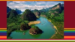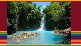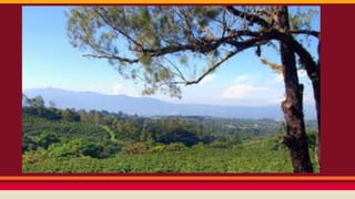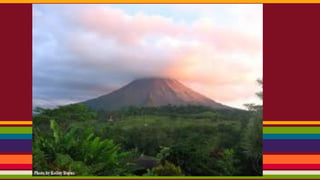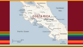 Costa Rica is dominated by mountains, including the Sierra Madre mountain range. It has a tropical climate year-round with varying microclimates depending on elevation and geography. Costa Rica was originally inhabited by indigenous peoples and was colonized by Spain in the 16th century, gaining independence in the 18th century. It has since become one of the most stable and prosperous Latin American nations. Spanish is the primary language with English also spoken. The capital is San Jose. Major exports include coffee, bananas, and meat products.