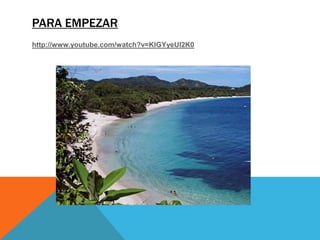 Spanish is the official language of Costa Rica, though English is commonly spoken in tourist areas. Indigenous languages are also present. The cuisine features rice and beans as staples, along with casados, gallo pinto, and meat-filled sandwiches called arreglados. Popular drinks include coffee, horchata, fresh fruit juices, beers, and guaro cane liquor. Costa Rica has a strong western artistic influence seen in wood carvings, paintings, and contemporary art. Traditional folk music varies regionally, while modern genres like salsa, cumbia, and reggaeton feature in dance clubs.