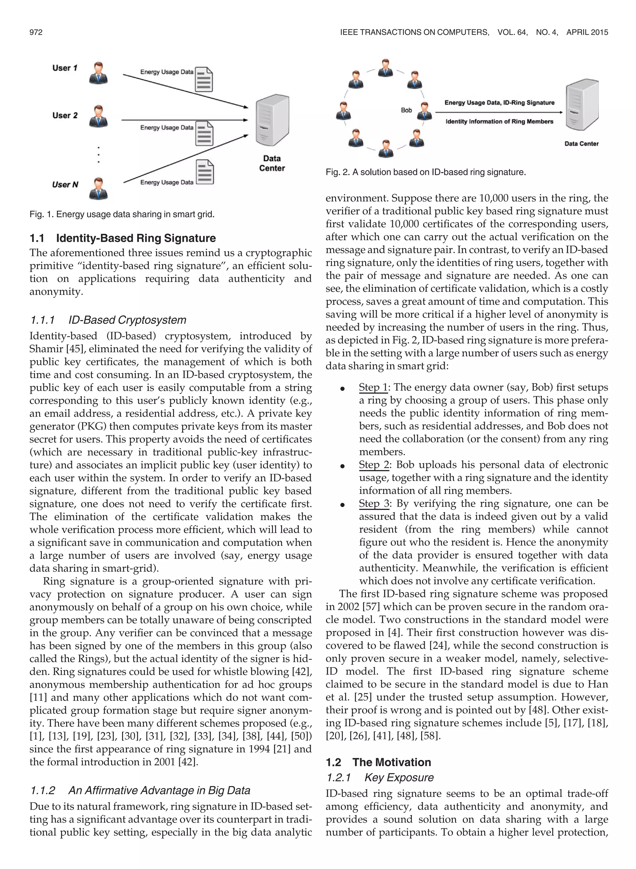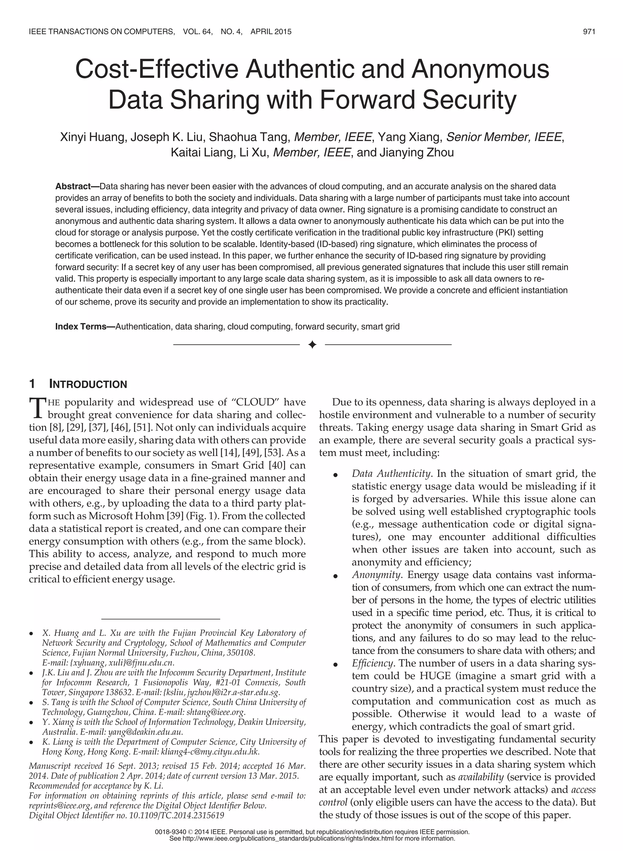 This paper presents a novel approach to cost-effective, authentic, and anonymous data sharing by introducing a forward secure identity-based ring signature system. This system addresses key exposure issues prevalent in data sharing environments, particularly in large-scale applications such as smart grids, by ensuring previously generated signatures remain valid even if a user's secret key is compromised. The proposed solution eliminates costly certificate verification, enhancing efficiency and scalability in big data analytics.