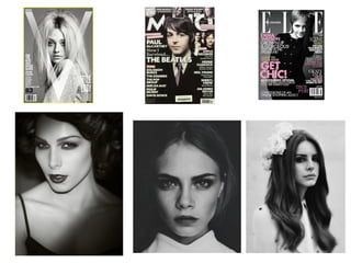The document outlines the plans for an indie pop magazine, including style icons, theme, front cover, contents page, and double page spread. The magazine will have a vintage 1970s/80s retro feel with a black and white color scheme and splashes of color. On the front cover, a close-up shot of the model will be in black and white with colored text. The contents page will feature Polaroid photos of the model and a gray background. The double page spread will continue the same color scheme and feature a close-up of the model and her interview presented in black boxes on a vintage background.