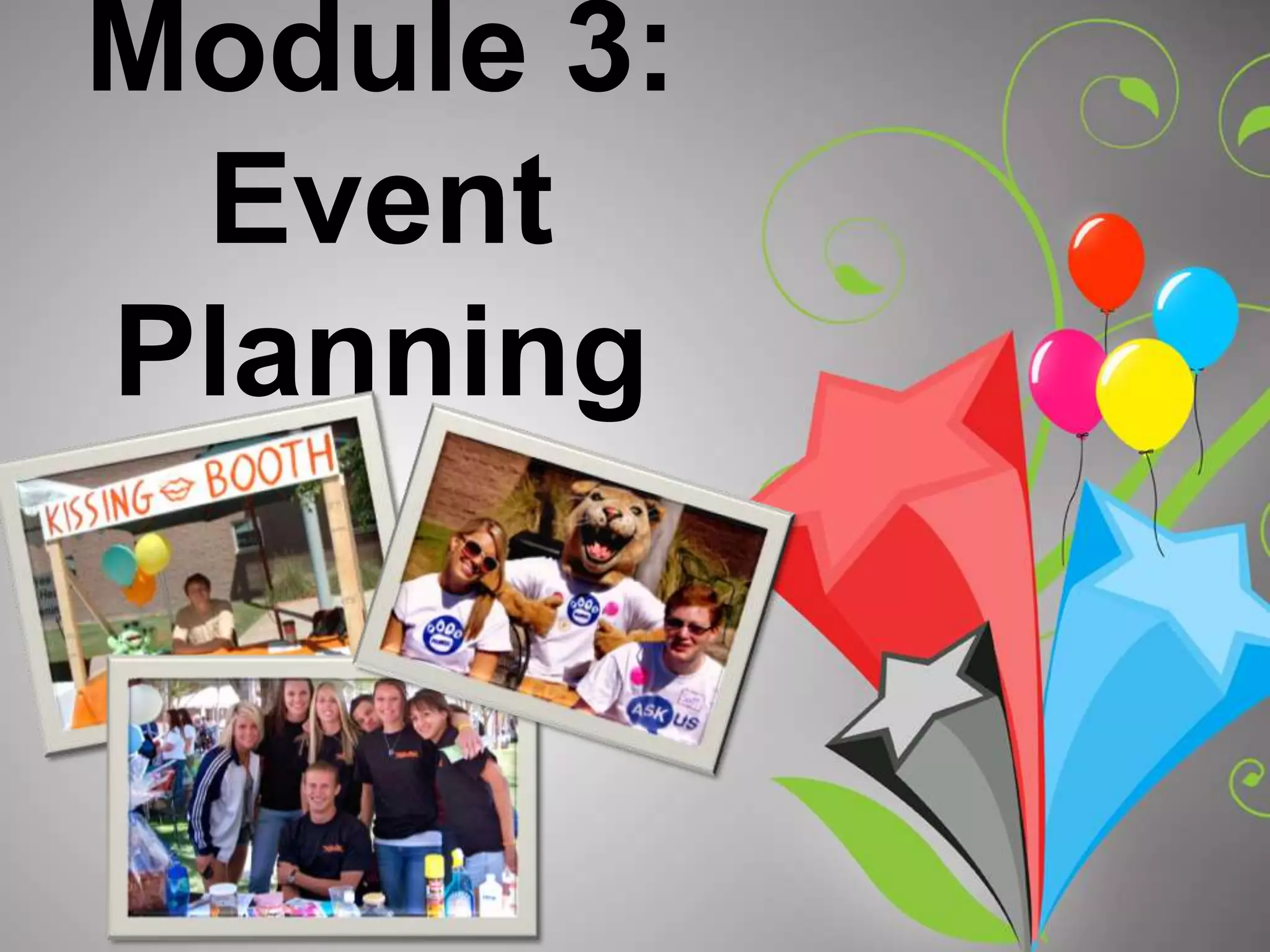 Planning events is an important part of what clubs do. The document outlines the basic policies and procedures for planning club events at Paradise Valley Community College. It emphasizes starting the planning process early, reserving spaces through the proper channels at least two weeks in advance, and working with Student Life for guidance and approval. Certificates of insurance may be required for certain vendors, and special policies apply to travel, movies, and food sales. Proper planning and following procedures helps ensure a successful event.