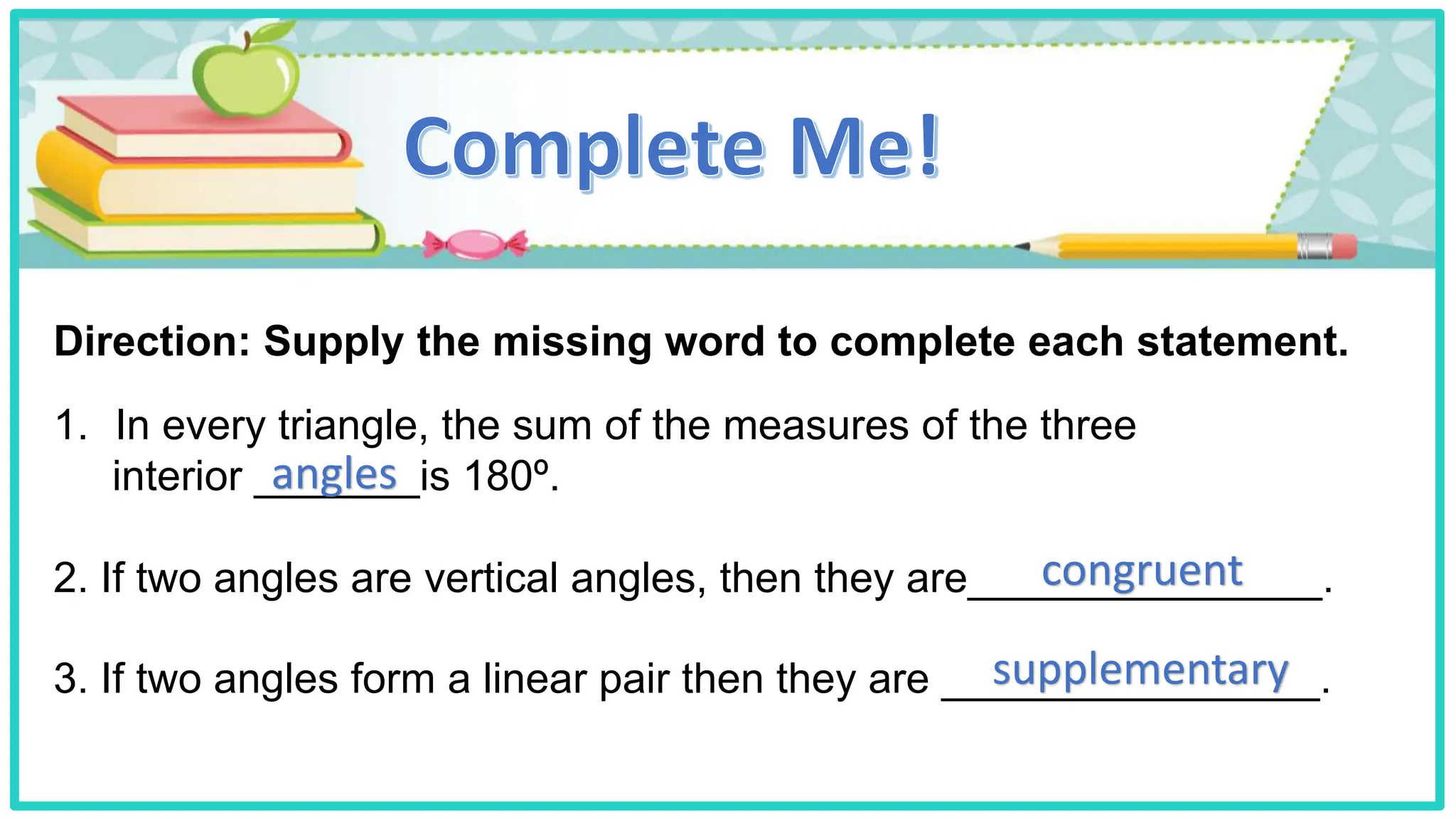 Here is a possible response from the contestant applying triangle congruence: