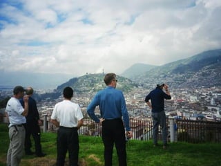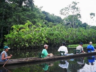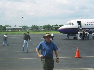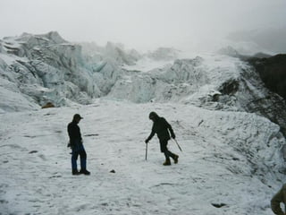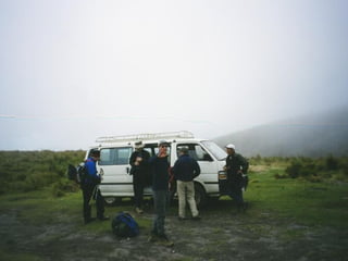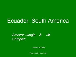 The document describes a trip four friends - Greg, Jimbo, Jim, and Larry - took to Ecuador in January 2004. It details their experiences in Quito, visiting the Amazon jungle along the Napo River, and climbing Mount Cotopaxi. They acclimatized before summiting the mountain, having their first glimpse of the peak and making it to the summit.