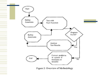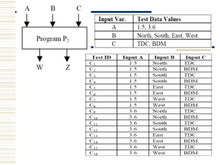 The document discusses various techniques for testing commercial off-the-shelf (COTS) components. It describes methods like the Analytic Hierarchy Process for COTS evaluation and selection. It also covers different approaches to provide testing information for COTS like the component metadata approach. The document discusses levels of testing like unit and integration testing as well as types of testing such as functionality, reliability and security testing.