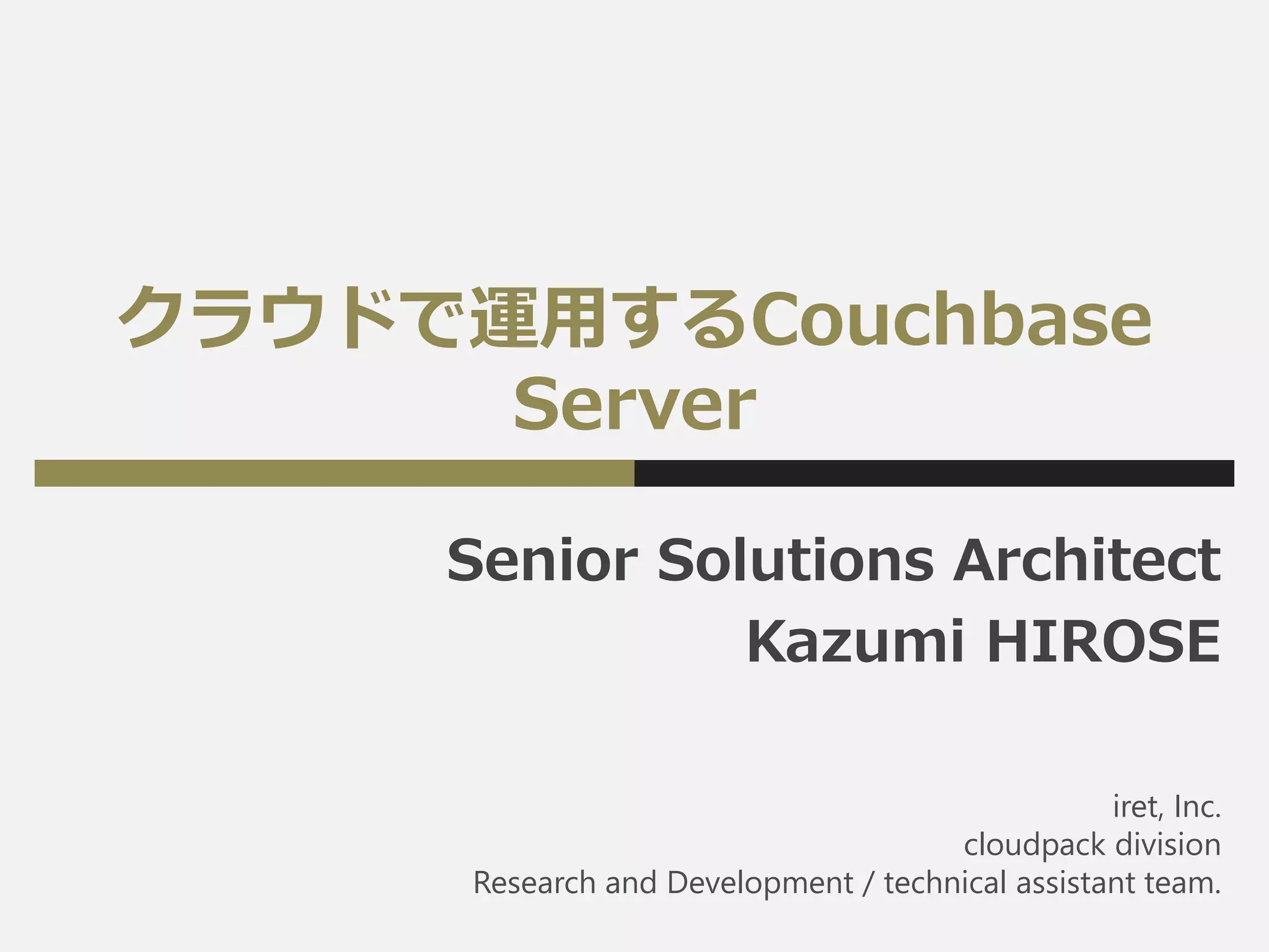 クラウドで運用するCouchbase Server Senior Solutions Architect Kazumi