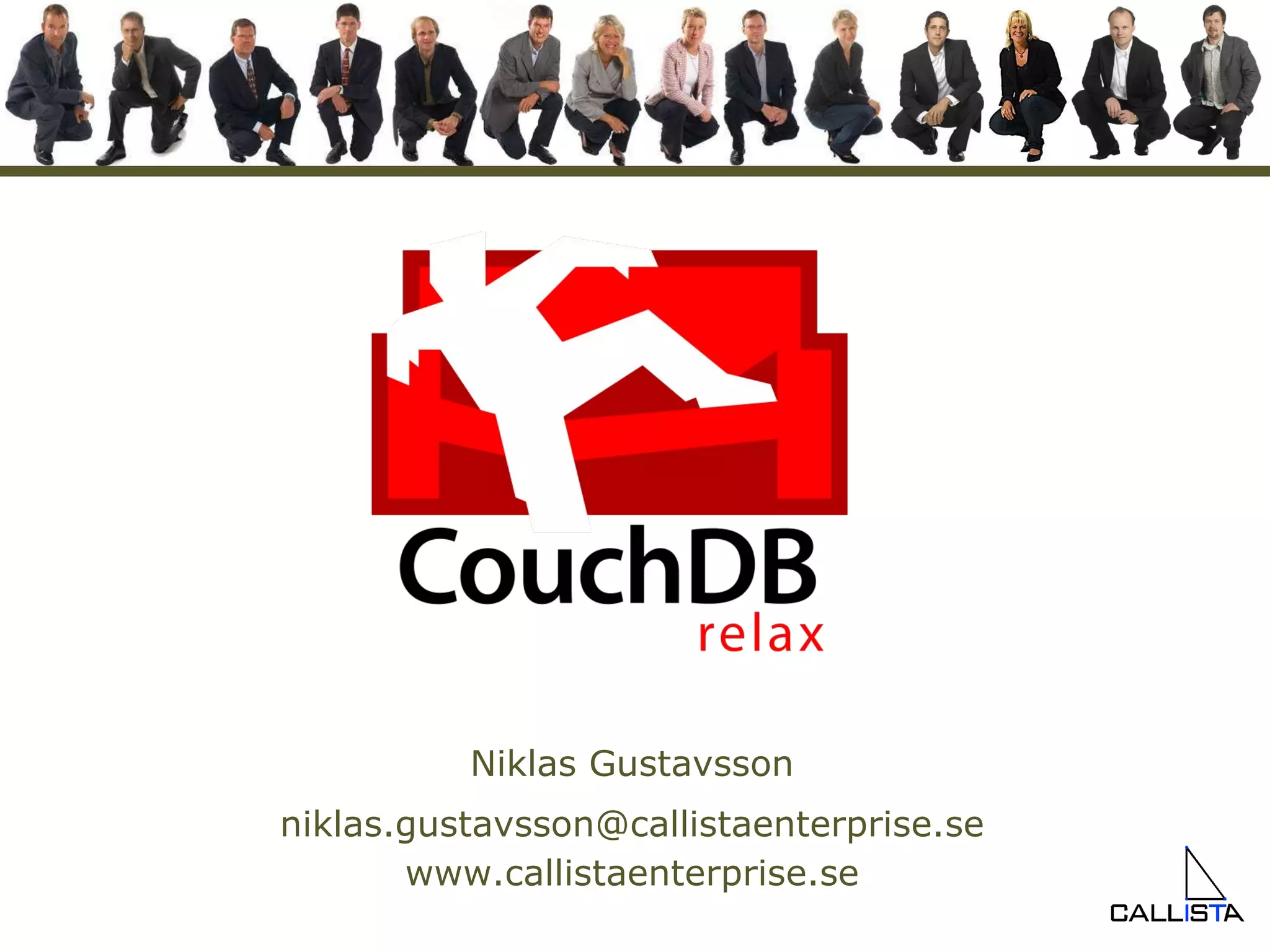 The document introduces CouchDB, an open-source document-oriented database. It notes that CouchDB uses a document model with JSON documents and map-reduce functions. It also discusses three main reasons for considering CouchDB - its focus on availability over consistency, ability to scale horizontally using map-reduce, and being well-suited for web applications via its RESTful API.