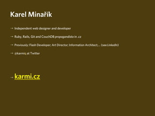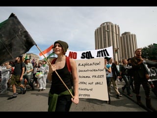 Apache CouchDB is a distributed, fault-tolerant, and schema-free document-oriented database that is accessible via a RESTful HTTP/JSON API, stores data in JSON documents with dynamic schemas, and uses HTTP for all operations. It allows for querying and analyzing the documents with JavaScript map/reduce functions. CouchDB is highly available, concurrent, and can scale horizontally on commodity hardware or cloud infrastructures.