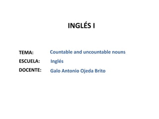 Countable nouns refer to things that can be counted, take plural forms, and use articles like "a" or "an". Uncountable nouns refer to things that cannot be counted, only have a singular form, and use quantities like "some". The document provides examples of countable nouns like "apple" and uncountable nouns like "bread", and explains that "how many" is used to ask about counts while "how much" asks about amounts of uncountables.