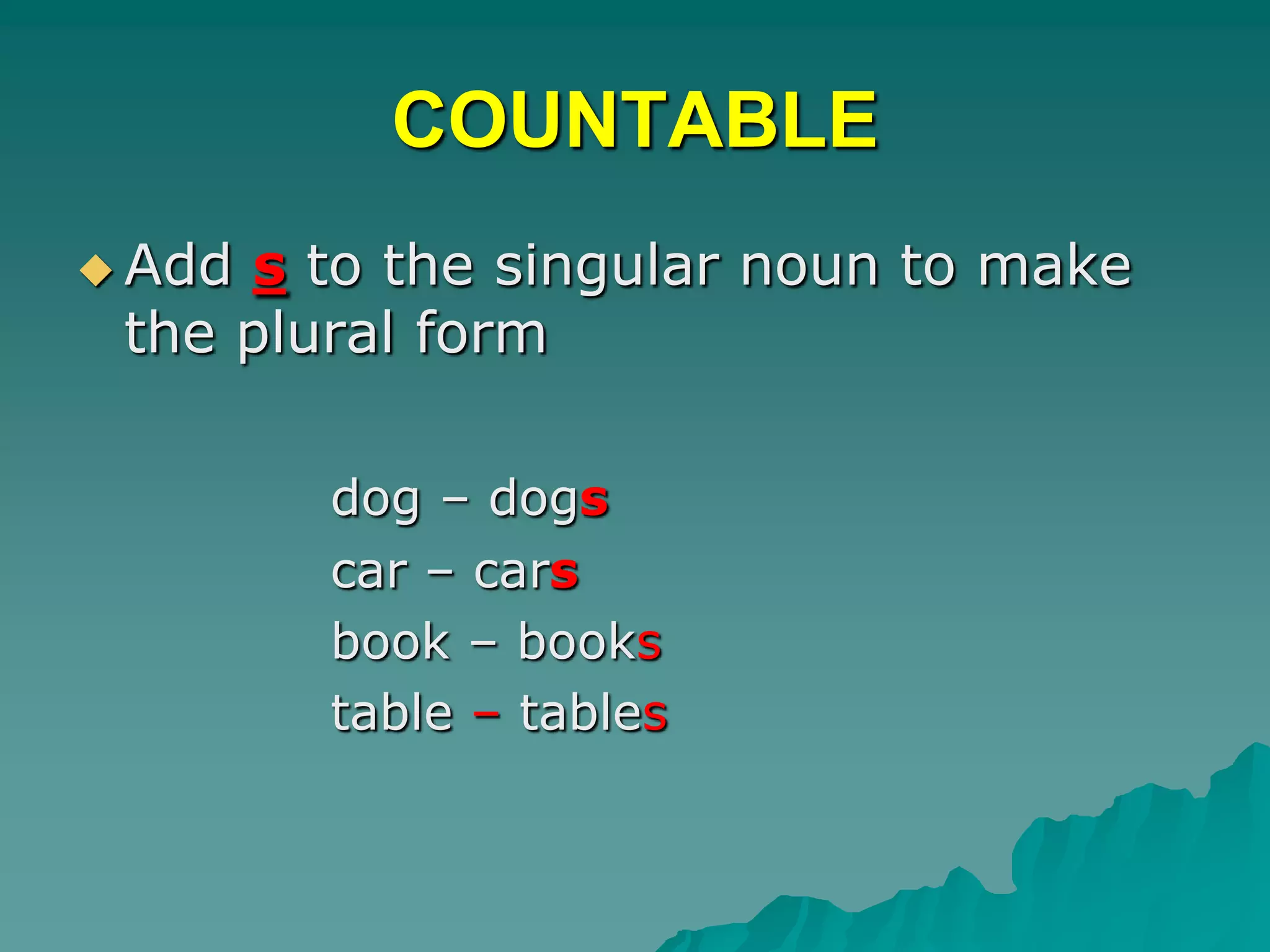 This document discusses countable and uncountable nouns in English. Countable nouns can take plural forms by adding 's' or changing the ending, like 'dog-dogs' or 'baby-babies'. Some countable nouns are irregular. Uncountable nouns refer to materials, feelings, qualities, and ideas. They do not have plural forms and take singular verbs. Some nouns can be countable or uncountable depending on meaning.