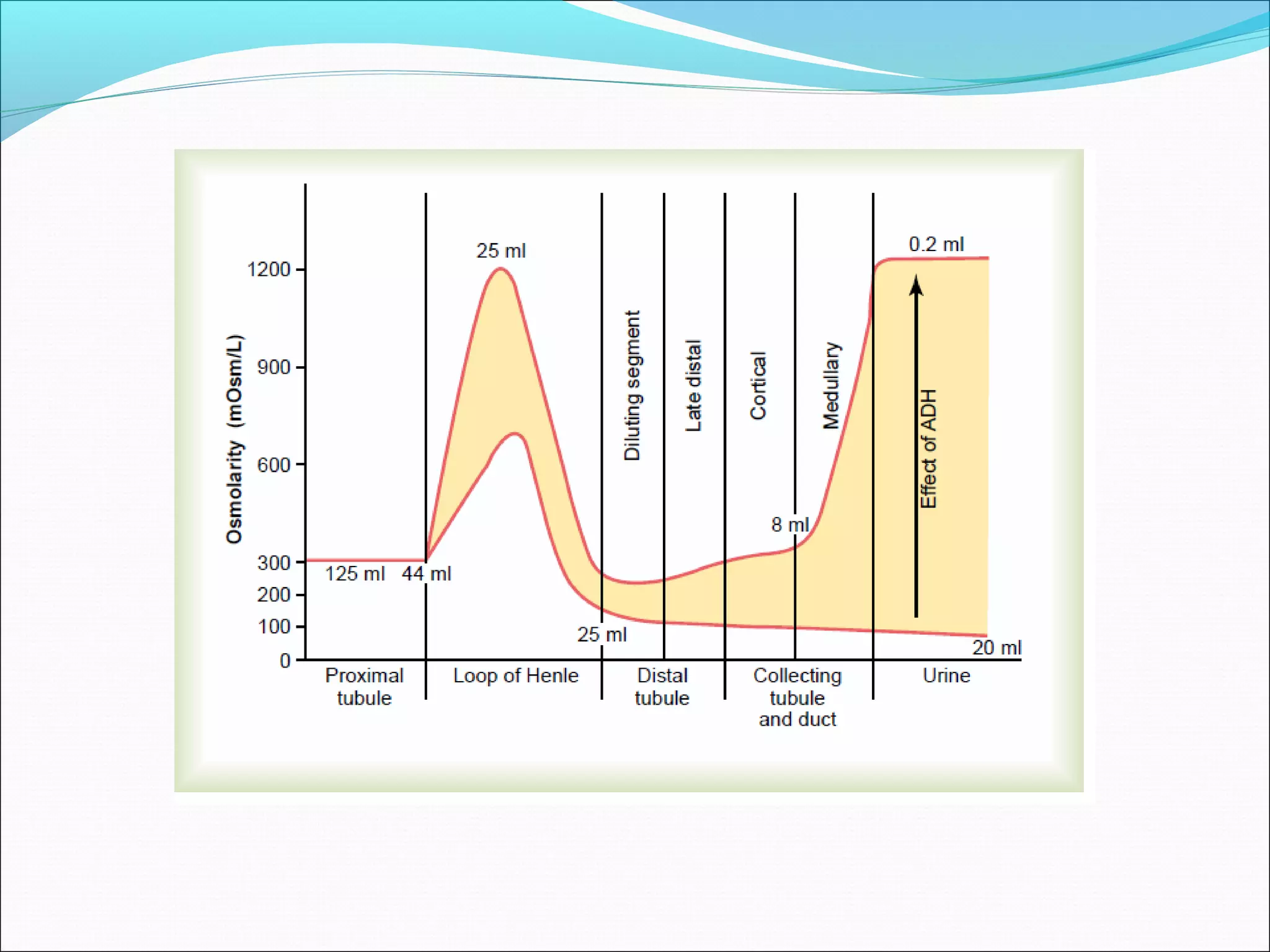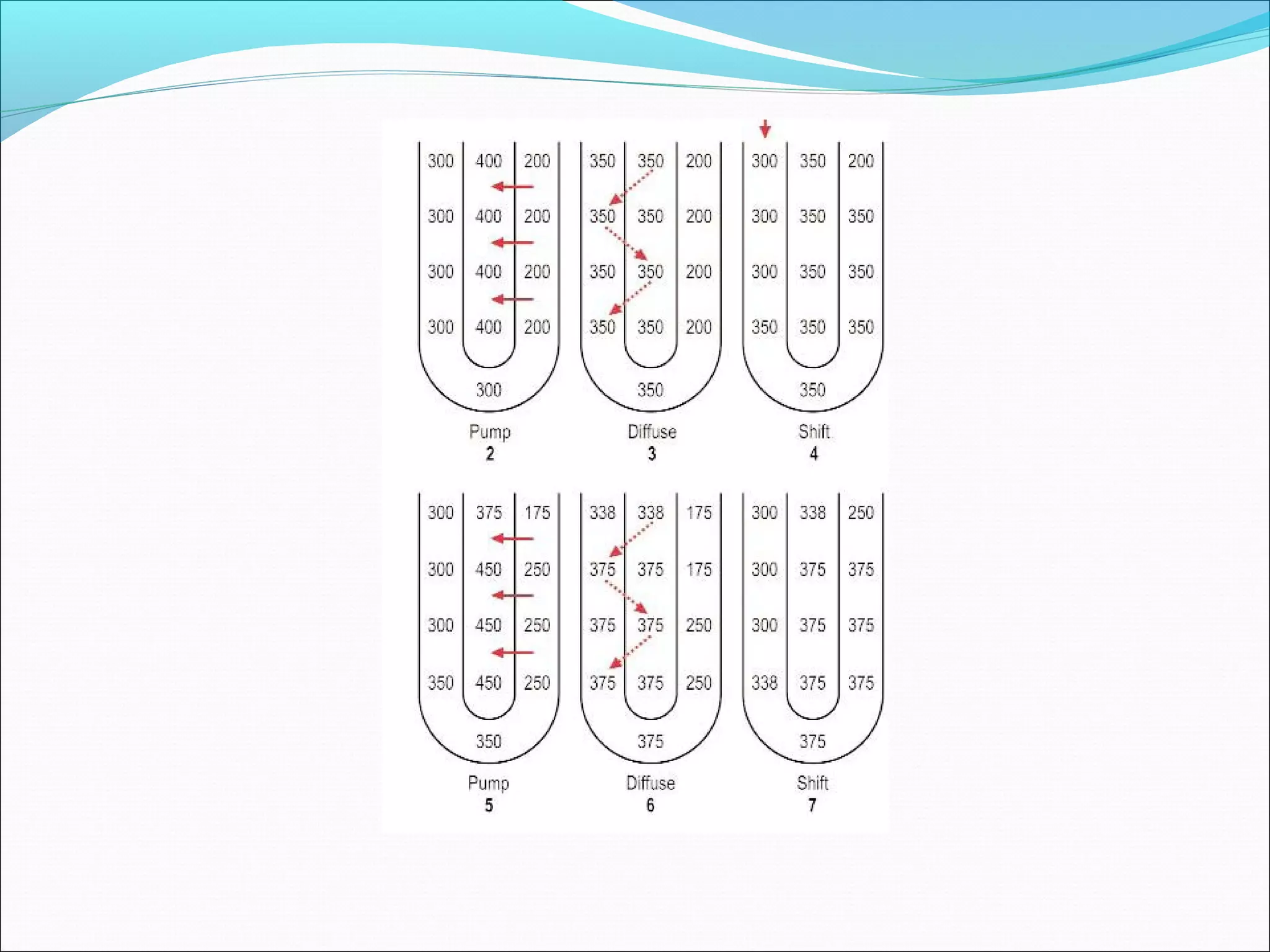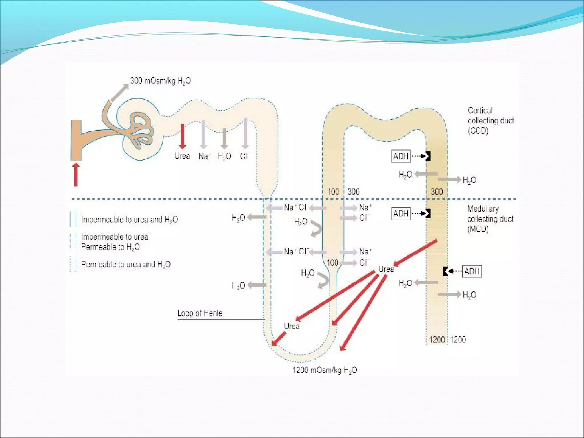 The countercurrent mechanism in the kidney produces a hyperosmotic renal medullary interstitium through three key processes: 1) the countercurrent multiplier effect of the thick ascending loop of Henle which repetitively reabsorbs sodium chloride, 2) active transport of ions from the collecting ducts into the medullary interstitium, and 3) facilitated diffusion of urea from the inner medullary collecting ducts into the medullary interstitium. This hyperosmotic interstitium is maintained by the countercurrent exchange function of the vasa recta blood vessels.