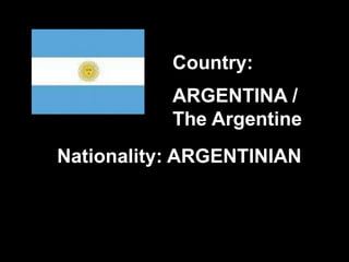 This document lists various countries and their corresponding nationalities in a simple two-column table format with the country name on the left and nationality on the right. Some country entries include additional details. In total, 20 different countries and their nationalities are provided in the list.