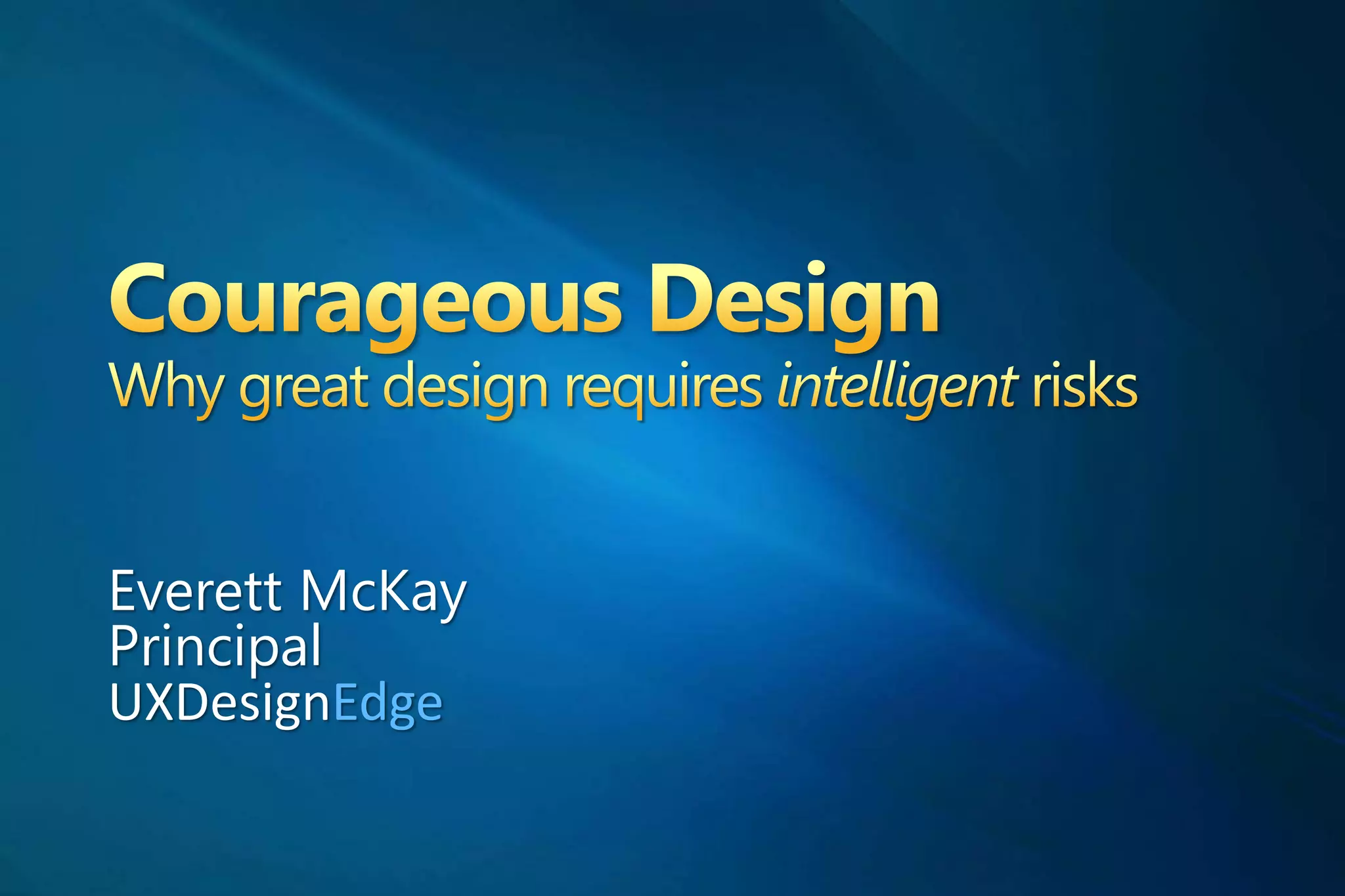 The keynote presentation by Everett McKay focuses on the importance of courageous design in UX/UI, emphasizing that great design requires intelligent risks rather than consensus-driven compromise. Key concepts include user-centered design, the impact of team culture on design decisions, and the role of data in guiding design while maintaining a balance between safety and creativity. McKay concludes by urging designers to strive for greatness in their work, challenging the prevailing mediocrity in organizational cultures.