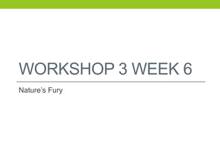 This document provides an agenda and lesson plans for a workshop on natural disasters. It includes the following: