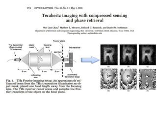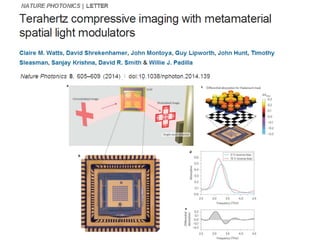 For spectroscopy, developments in terahertz hardware using new materials like GaAsBi and nanoplasmonic structures were expanding the range beyond visible light. Computational trends included compressive sensing and layer separation using pulse features.