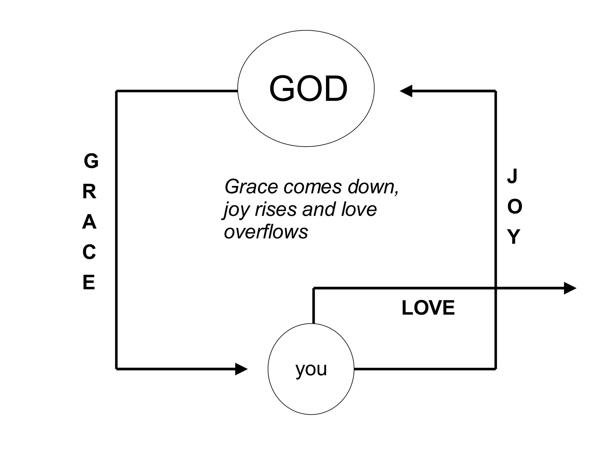 This short document discusses religious concepts in a minimal way. It states that grace comes from God, which leads to joy rising in people and love overflowing from within.
