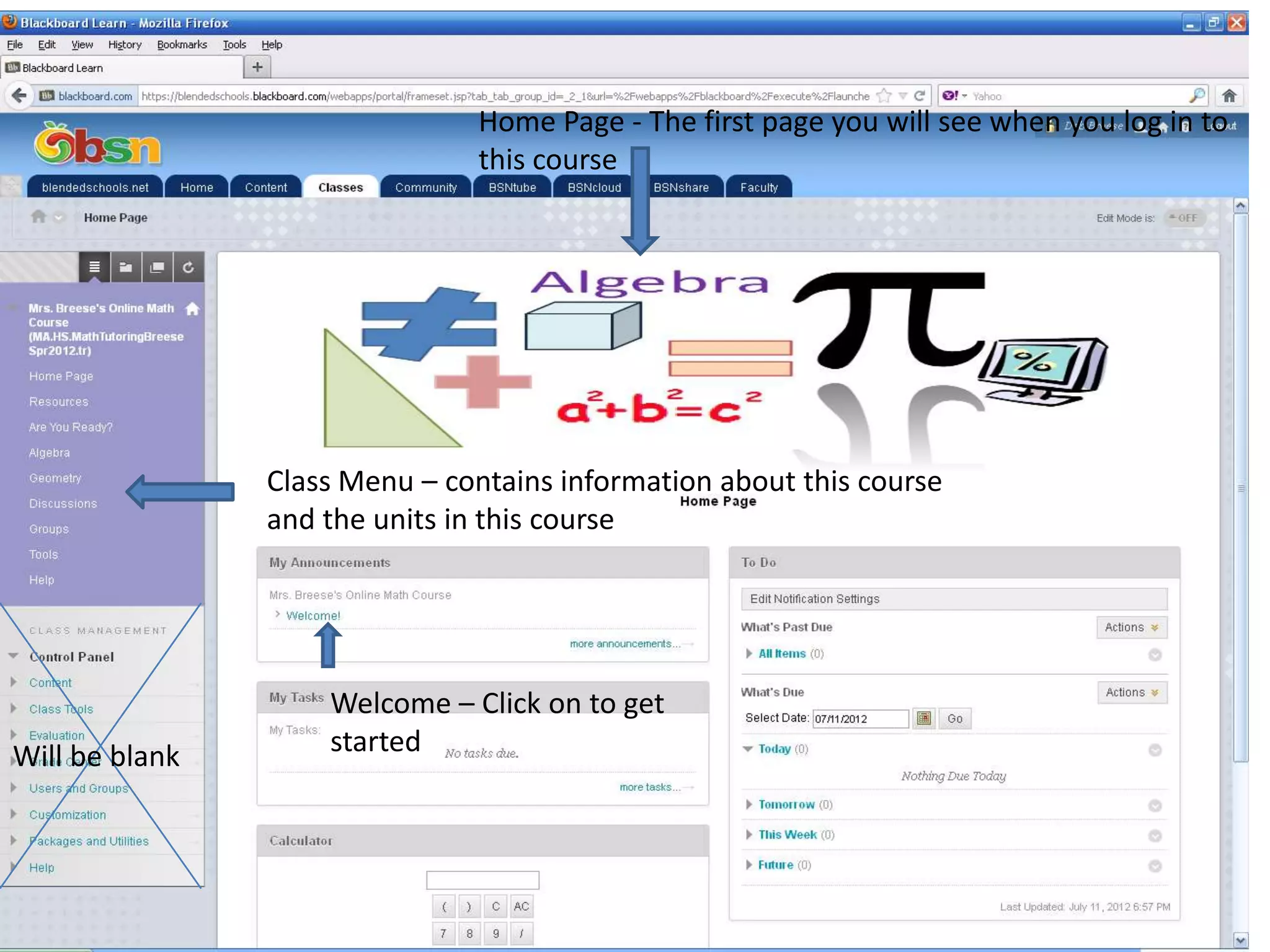 1. A class menu that contains information about the course units.