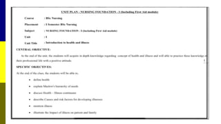 The document outlines the comprehensive processes of course, unit, and lesson planning in nursing education. It emphasizes the significance of structured planning for effective learning experiences, detailing criteria, characteristics, and essential steps for each type of planning. Additionally, the roles of teachers in facilitating this planning and the importance of clear objectives, resources, and evaluation methods are highlighted.