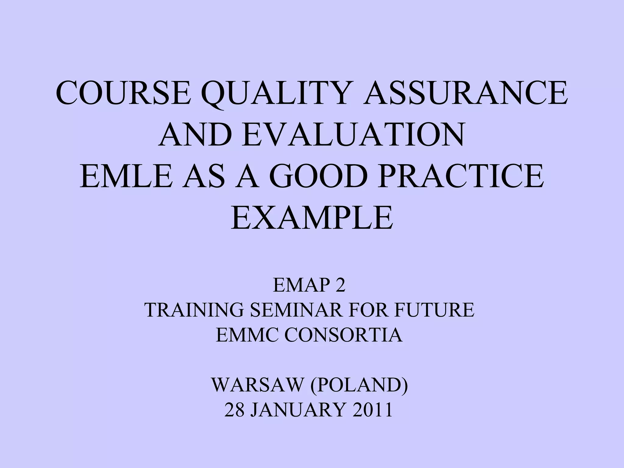 The document provides an overview of the EMLE master's program in law and economics, highlighting its history, structure, and the importance of quality assurance measures. It discusses challenges and recommendations for internal and external quality assurance, including the integration of evaluation results and maintaining communication with alumni. Key aspects include vertical and horizontal integration, as well as the need for transparency and open communication among faculty and stakeholders to improve program quality.