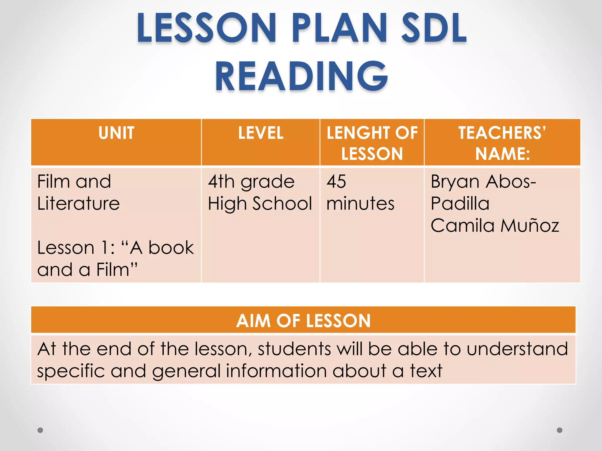 This lesson plan outlines a 45-minute class for 4th grade high school students on the topic of comparing a book and a film. It includes various activities such as predicting, skimming, and scanning to enhance reading comprehension and vocabulary related to literary works. The lesson aims for students to understand specific and general information from the texts provided.