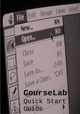 This document provides a quick start guide for using CourseLab, an e-learning authoring system. It summarizes how to start CourseLab, create a new course using the module wizard, and understand the anatomy of a course including the default screen, use of slides and master pages. It also outlines how to add text, graphics, questions and use actions within CourseLab modules. The guide is intended to help new users understand the basic features and functionality of CourseLab for creating interactive e-learning content.