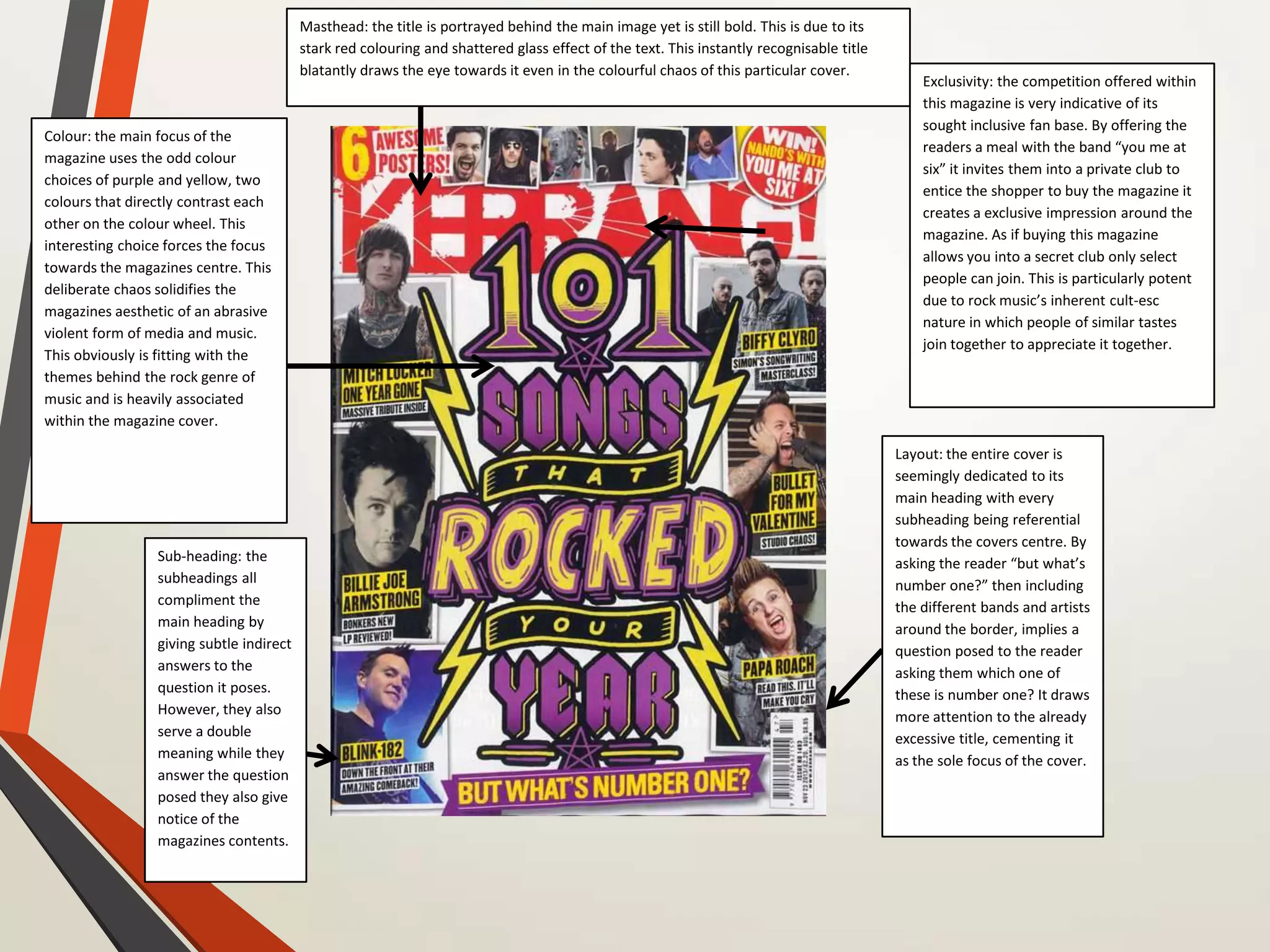 - Key points analyzed include how the bold masthead draws the eye, the use of contrasting colors to focus attention, and how informal language aims to build exclusivity and connection with readers.
