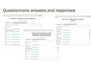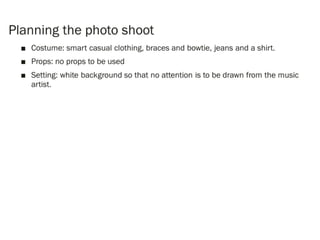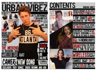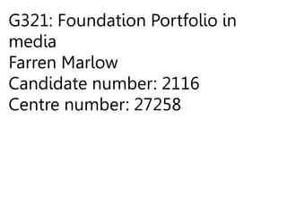 The document provides details about a student's foundation portfolio for a media course. It includes a chosen brief to create the front page of a school magazine. It then analyzes conventions for magazine covers and contents pages. Success criteria for the tasks and examples of covers created for a music magazine and school magazine are discussed. Presentational devices, language features, and representations used in magazine covers are also examined.