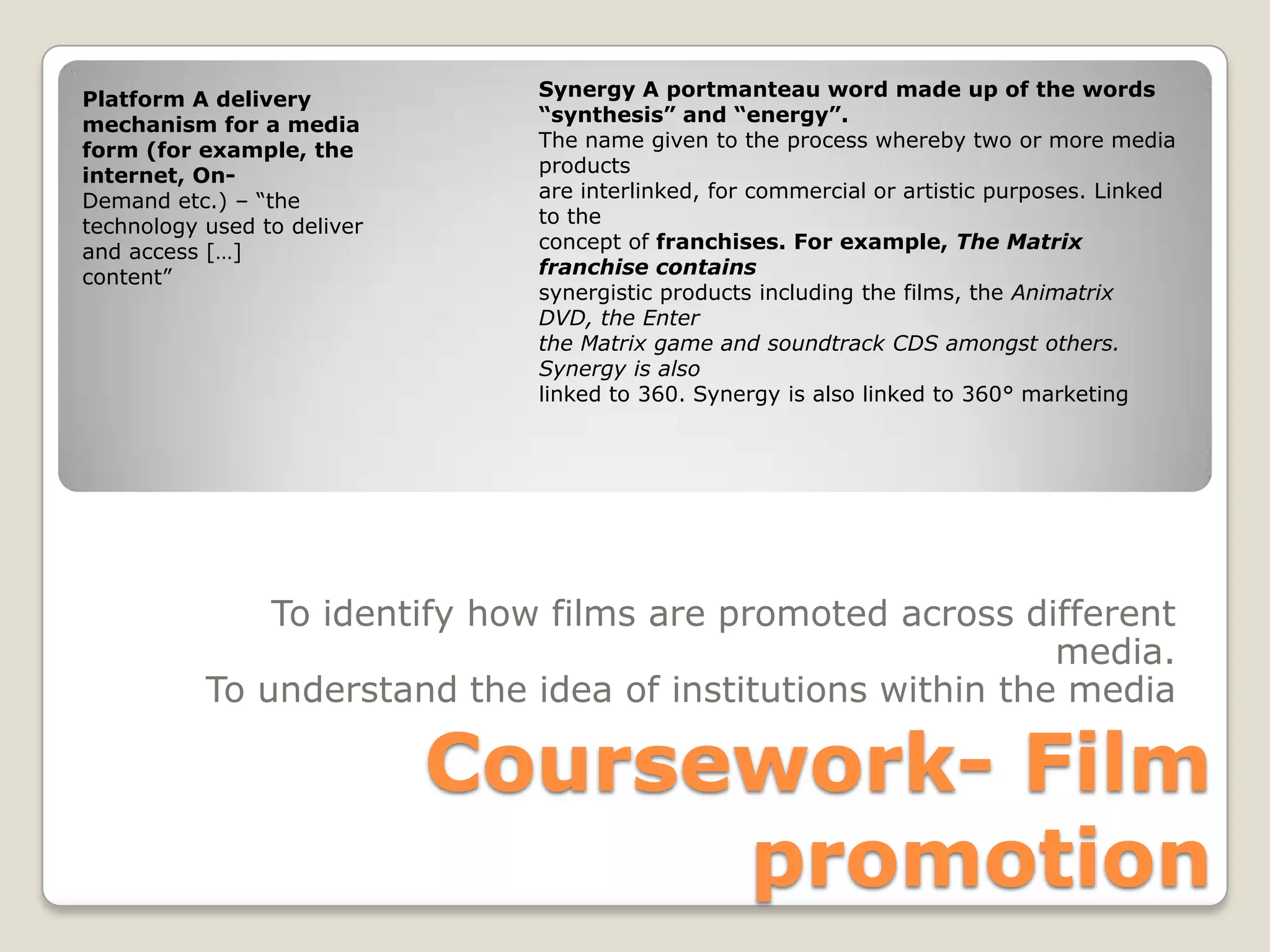 - Synergy refers to the process of interlinking multiple media products from a franchise for commercial or artistic purposes, such as films, video games, soundtracks, and animated content. This allows properties to be experienced across different platforms.