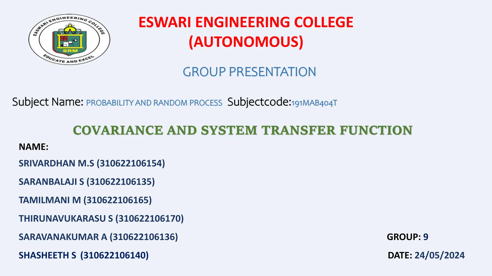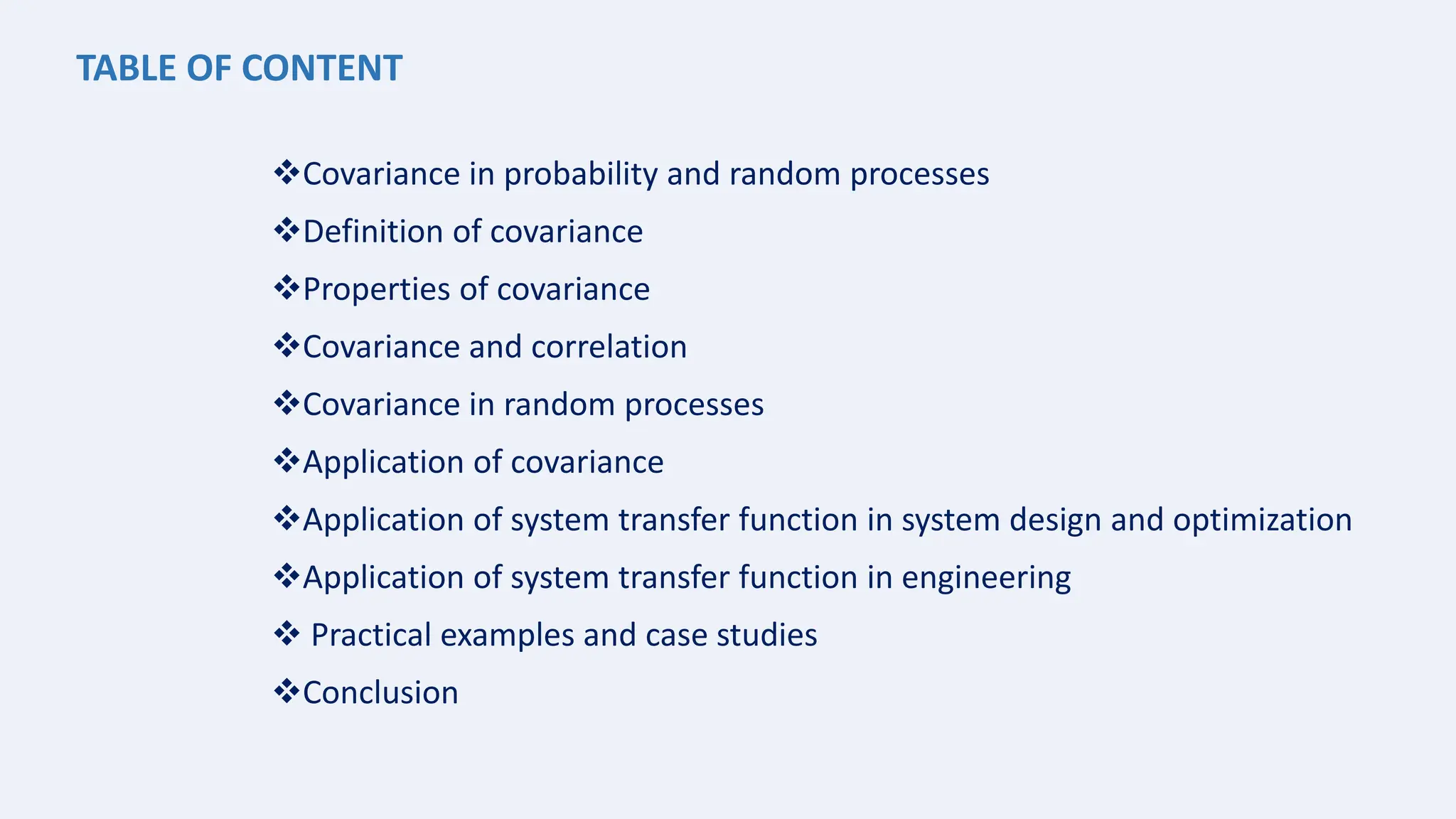 The document discusses covariance and its applications in probability and random processes, highlighting its importance in measuring relationships between random variables. It also covers the role of system transfer functions in engineering design and optimization, with practical examples related to various fields such as automotive and biomedical engineering. Key takeaways emphasize the significance of covariance and transfer functions in analyzing complex systems and presenting opportunities for advanced modeling techniques.