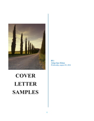 The document provides guidance on writing effective cover letters, including common mistakes to avoid and sample cover letters. It discusses key sections of a cover letter such as introducing the applicant's interest in the position and company, highlighting relevant skills and experience, and requesting an interview. The samples demonstrate how to address a cover letter, tailor it to a specific role, and explain gaps in employment history. Overall, the document offers advice on crafting cover letters that emphasize the applicant's suitability for the job and increase their chances of securing an interview.