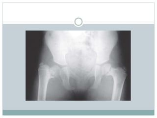 A 3-year-old girl presented with a limp in her right leg and was diagnosed with coxa vara. Coxa vara is a decrease in the angle between the femoral neck and shaft to less than 120 degrees. It can be congenital, developmental, or secondary to other bone diseases. Surgical management involves subtrochanteric osteotomy to correct the angle, which is fixed internally with plates or screws. Postoperative care includes casting for 8-12 weeks until radiographic healing is seen. Complications can include recurrence, physeal injury, or leg length discrepancy.