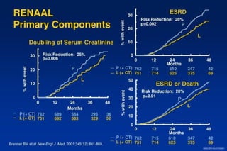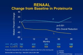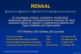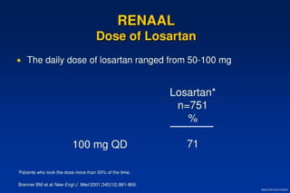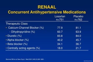 The document summarizes key findings from the LIFE study, a large clinical trial that compared losartan to atenolol for reducing cardiovascular risk in hypertensive patients with left ventricular hypertrophy. The main findings were:
