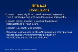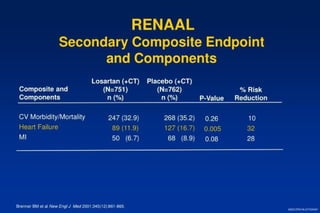 2) Secondary analyses found losartan reduced risks for several individual components of the primary endpoint including stroke and heart failure hospitalizations.
